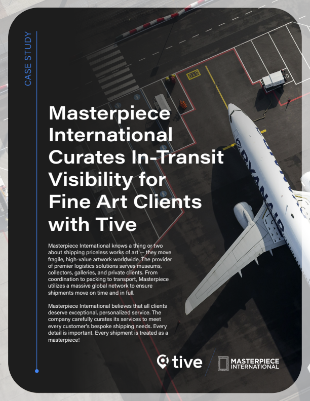 CASE STUDY Masterpiece International Curates In-Transit Visibility for Fine Art Clients with Tive Masterpiece International knows a thing or two about shipping priceless works of art — they move fragile, high-value artwork worldwide. The provider of premier logistics solutions serves museums, collectors, galleries, and private clients. From coordination to packing to transport, Masterpiece utilizes a massive global network to ensure shipments move on time and in full. Masterpiece International believes that all clients deserve exceptional, personalized service. The company carefully curates its services to meet every customer's bespoke shipping needs. Every detail is important. Every shipment is treated as a masterpiece!